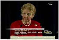 "No Higher Power: Obama's War on Religious Freedom" Hear Phyllis Schlafly talk about her book, [No Higher Power: Obama's War on Religious Freedom] on C-Span. She brilliantly presents the facts.